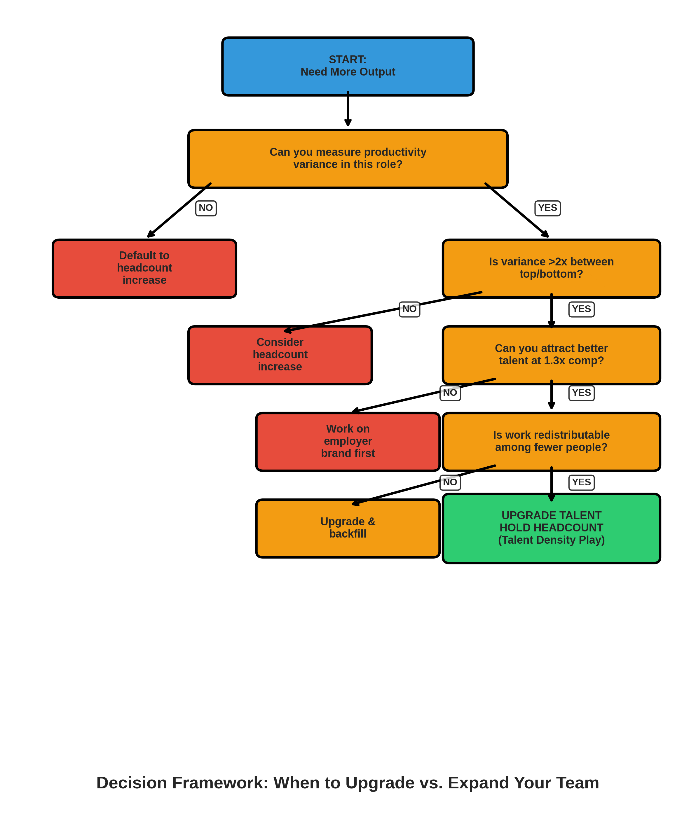 The test is simple: measure output per person for 90 days across your team. If you don’t see meaningful variance, then your bottleneck isn’t talent quality - it’s probably process, systems, or resources. Fix those first. But if you do see that 2x+ spread between top and bottom performers, you’re sitting on a talent density opportunity.