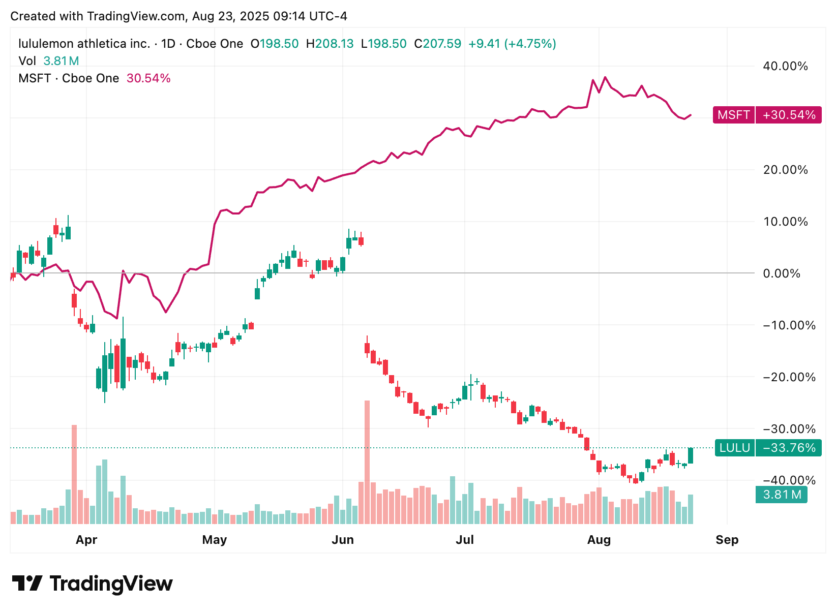 Think about how often you’ve heard someone justify a career decision with sunk effort: I’ve already put ten years into this company, I can’t leave now. Or how many times you’ve seen a manager refuse to cut a struggling employee because we’ve already invested so much in training them. These are not strategic decisions; they’re psychological errors, no different from the investor hanging onto LULU 0.00%↑ at $400 while ignoring that MSFT 0.00%↑ or NVDA 0.00%↑ are compounding at multiples of Lululemon’s return.